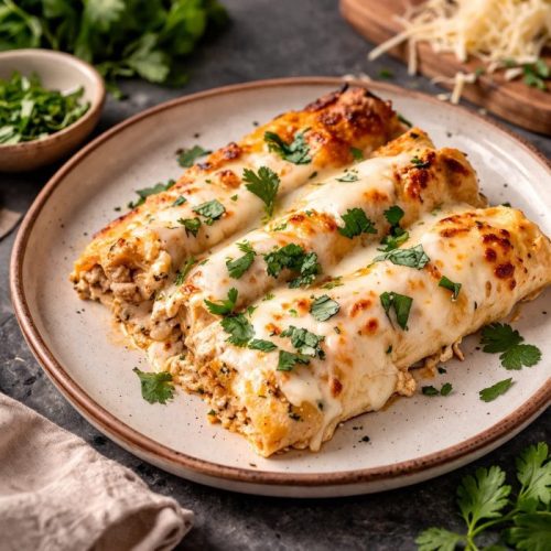 Somewhere between rolling tortillas and layering everything into the dish, Creamy Chicken Enchiladas quietly took shape. The oven filled the space with warmth as the cheese melted into the sauce, and the edges turned slightly golden.