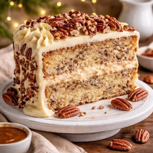 Butter Pecan Cake is a rich, moist layered cake made with browned butter, finely chopped pecans, and a creamy frosting, offering a nutty, buttery flavor that’s perfect for gatherings or special occasions.