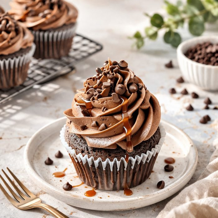 Spread or pipe frosting over fully cooled cupcakes, creating a soft, rich finish.