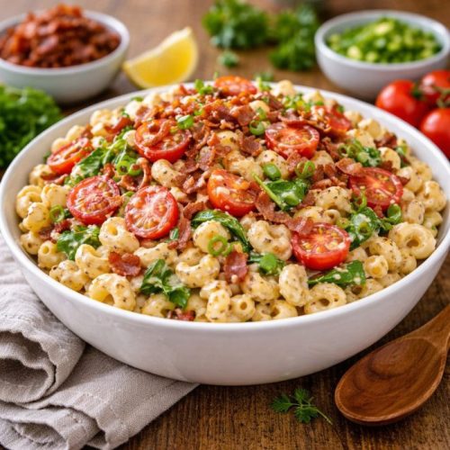 BLT Macaroni Salad is a creamy, chilled pasta salad combining tender macaroni, fresh tomatoes, crisp lettuce, and a tangy dressing inspired by classic BLT flavors.