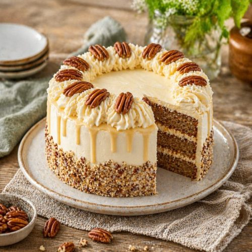 Butter Pecan Cake came together on a late autumn afternoon when the house carried that gentle hum of preparation before a small family gathering. My sister had arrived early with a basket of pecans from a local market, still warm from roasting, and my grandchildren were busy at the table sorting them into little piles, sneaking a few bites along the way. The kitchen felt alive in that quiet, steady way that only happens when something special is being prepared.